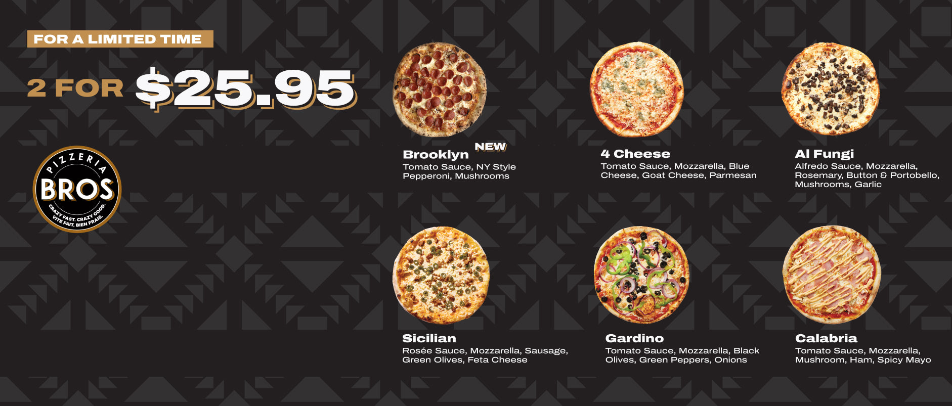 We have something on our menu for everybody! So if you’re not in the mood for pizza, try one of our fresh sandwiches or salads instead! We also have vegan / gluten sensitive options so everybody can enjoy Pizzeria Bros!